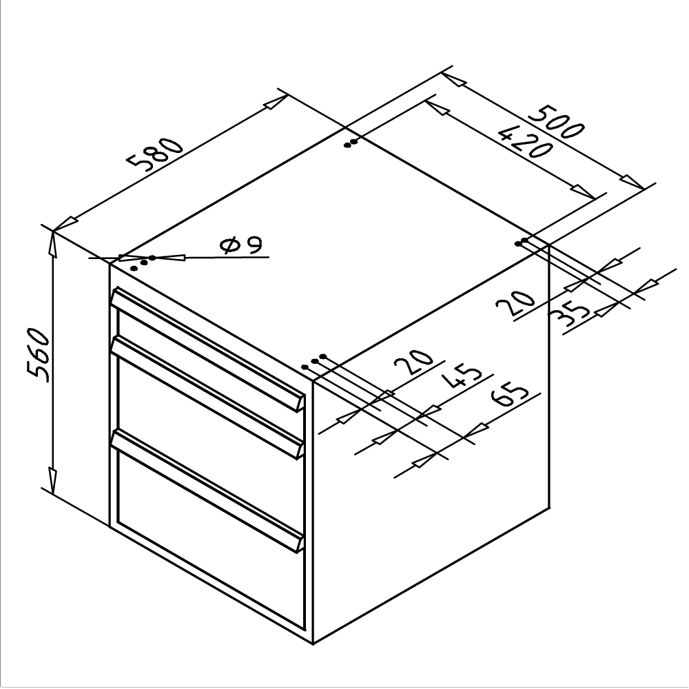 • Notranjost predala: Š = 425 mm, G = 550 mm, efektivna višina = V-10 mm