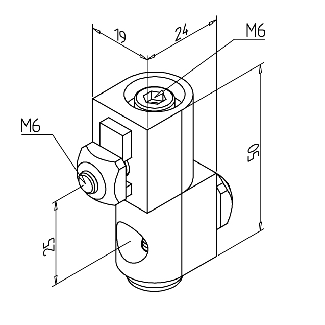 • Vstavite cilindrični vijak in ga zategnite s ključem 4 A/F. Vstavljena šestkotna matica v spodnji pritrdilni polovici je zaščitena proti zasuku