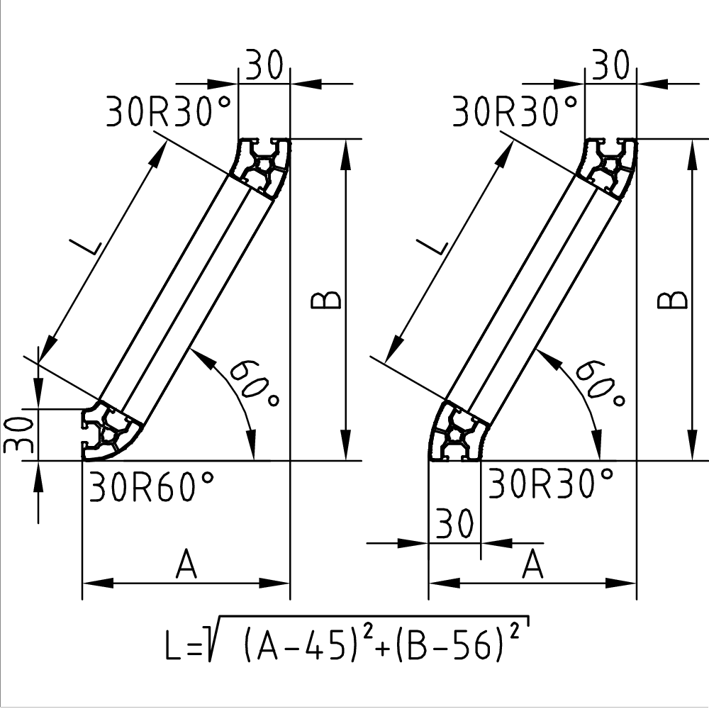 Alu profil 30 R 30° za trdne konstrukcije in enostavno sestavljanje. Alu profili za sestavljanje in konstrukcije za industrijo in strojegradnjo.