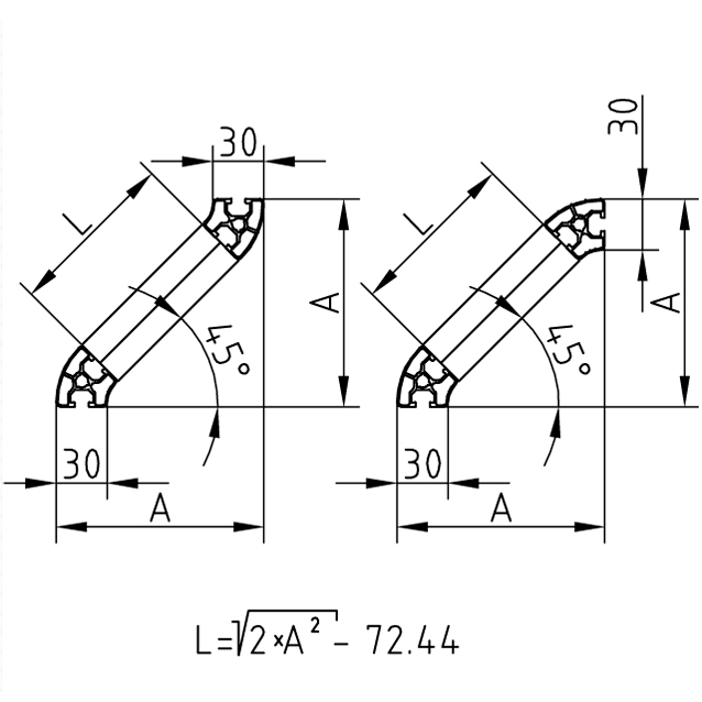 Alu profil 30 R 45° za trdne konstrukcije in enostavno sestavljanje. Alu profili za sestavljanje in konstrukcije za industrijo in strojegradnjo.
