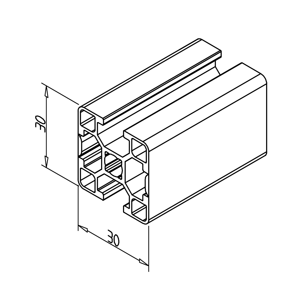 Alu profil 30 x 30 2GG za trdne konstrukcije in enostavno sestavljanje. Alu profili za sestavljanje in konstrukcije za industrijo in strojegradnjo.