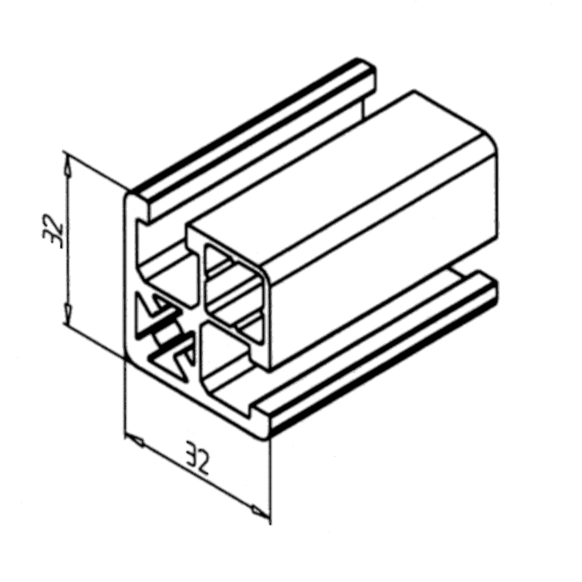 Alu profil 32 x 32 UL za trdne konstrukcije in enostavno sestavljanje. Alu profili za sestavljanje in konstrukcije za industrijo in strojegradnjo.