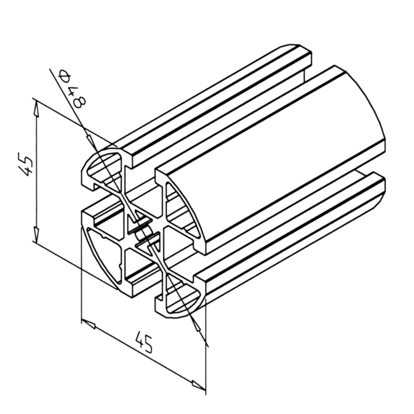 Alu profil 45 R4 za trdne konstrukcije in enostavno sestavljanje. Alu profili za sestavljanje in konstrukcije za industrijo in strojegradnjo.