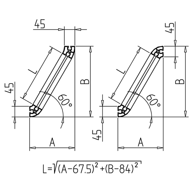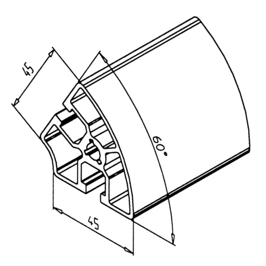 Alu profil 45 R 60° za trdne konstrukcije in enostavno sestavljanje. Alu profili za sestavljanje in konstrukcije za industrijo in strojegradnjo.