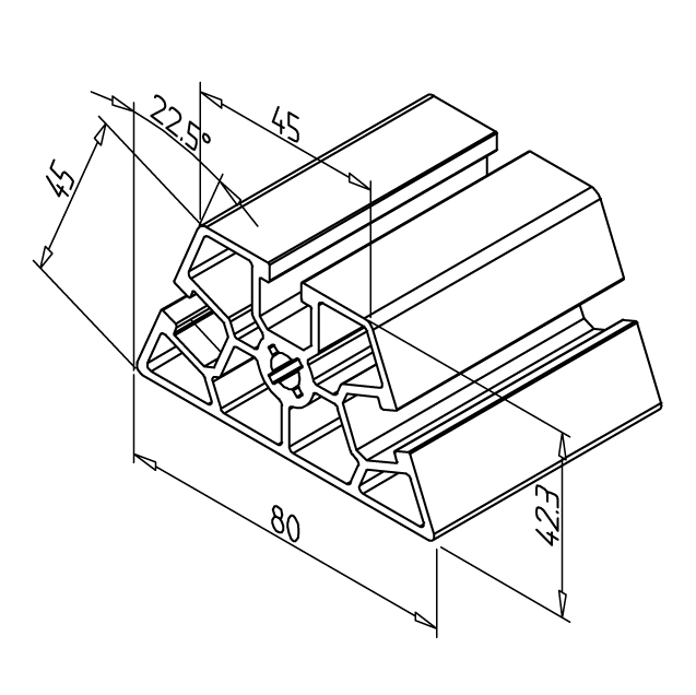 Alu profil 45/22.5° za trdne konstrukcije in enostavno sestavljanje. Alu profili za sestavljanje in konstrukcije za industrijo in strojegradnjo.