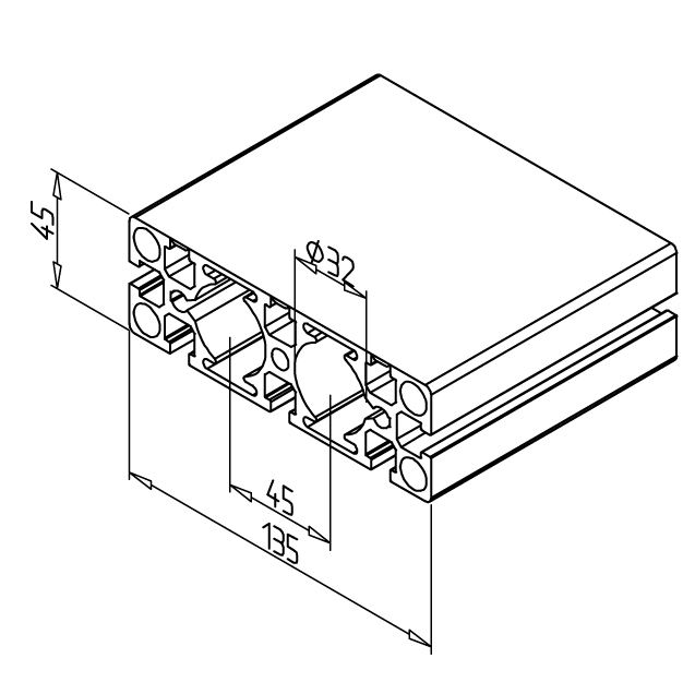 Centralna izvrtina Ø 32 mm za kroglične ležaje LME 20, za kroglične ležaje 6201 ali 6002, za cevovode s stisnjenim zrakom ali vodenje hidravličnih dodatnih cilindrov