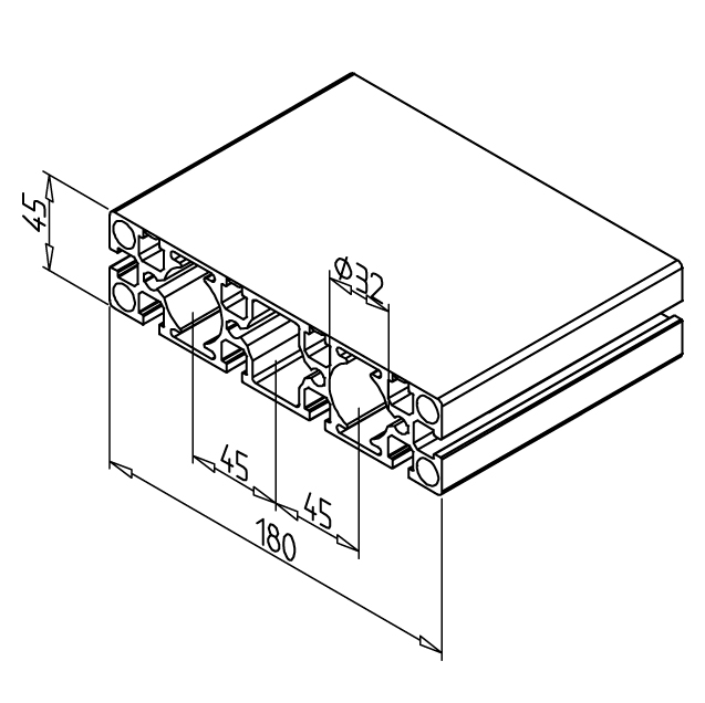Alu profil 45 x 180 1G za trdne konstrukcije in enostavno sestavljanje. Alu profili za sestavljanje in konstrukcije za industrijo in strojegradnjo.