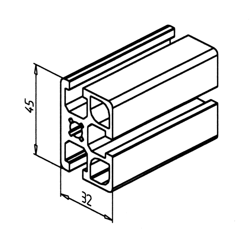Alu profil 45 x 32 F za trdne konstrukcije in enostavno sestavljanje. Alu profili za sestavljanje in konstrukcije za industrijo in strojegradnjo.
