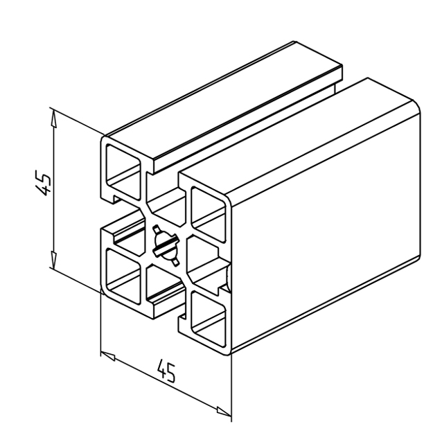 Alu profil 45 x 45 1G za trdne konstrukcije in enostavno sestavljanje. Alu profili za sestavljanje in konstrukcije za industrijo in strojegradnjo.