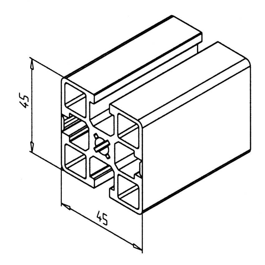 Alu profil 45 x 45 2GG za trdne konstrukcije in enostavno sestavljanje. Alu profili za sestavljanje in konstrukcije za industrijo in strojegradnjo.