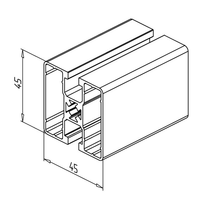 Alu profil 45 x 45 UL 2GG za trdne konstrukcije in enostavno sestavljanje. Alu profili za sestavljanje in konstrukcije za industrijo in strojegradnjo.
