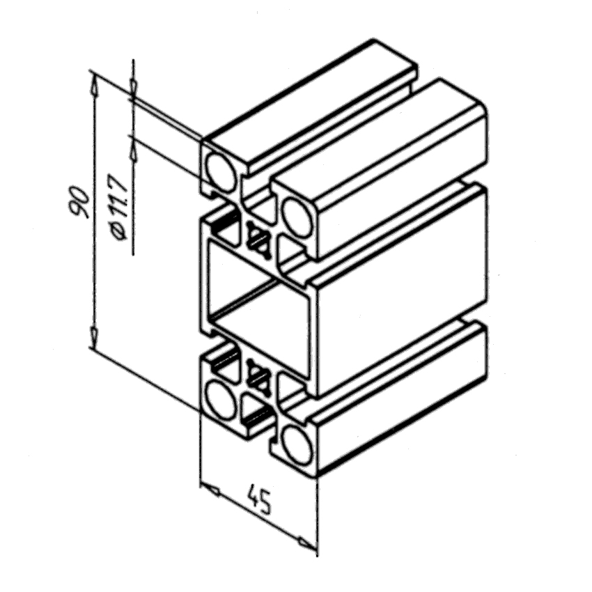 Alu profil 45 x 90 za trdne konstrukcije in enostavno sestavljanje. Alu profili za sestavljanje in konstrukcije za industrijo in strojegradnjo.