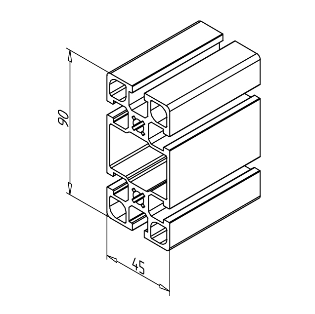 Alu profil 45 x 90 F za trdne konstrukcije in enostavno sestavljanje. Alu profili za sestavljanje in konstrukcije za industrijo in strojegradnjo.