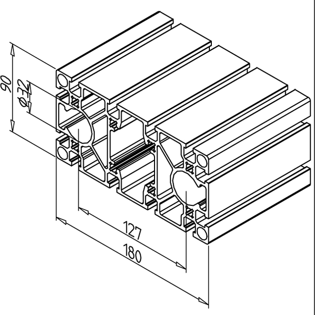 Centralni preboj Ø 32 mm za kroglična vodila LME 20, za kroglične ležaje 6201 ali 6002, za cevovode s stisnjenim zrakom ali vodenje hidravličnih dodatnih cilindrov