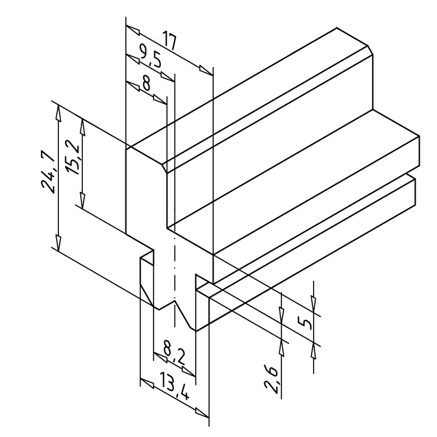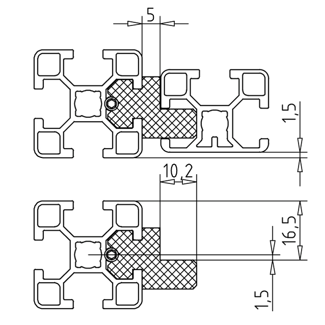 Kotno drsno vodilo 30 za natančno vodeno gibanje vrat in elementov pod kotom v industrijskih konstrukcijah.