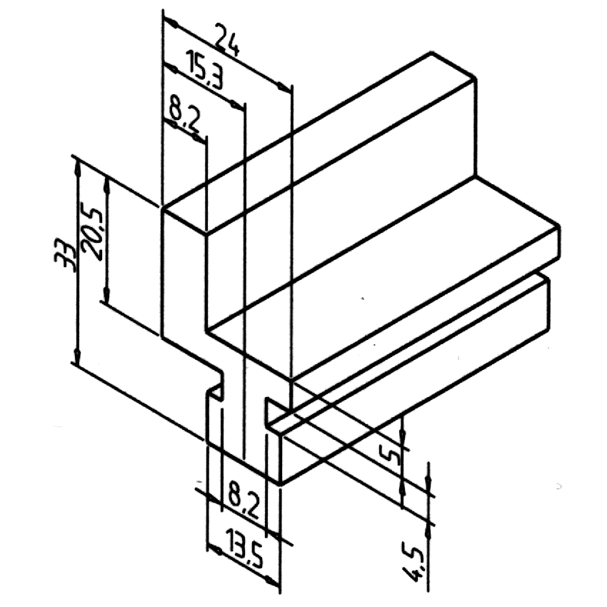 • Vstavite v profilni utor in po potrebi pritrdite z imbus vijakom M6 x 16 Ident št. 21.1324/0.