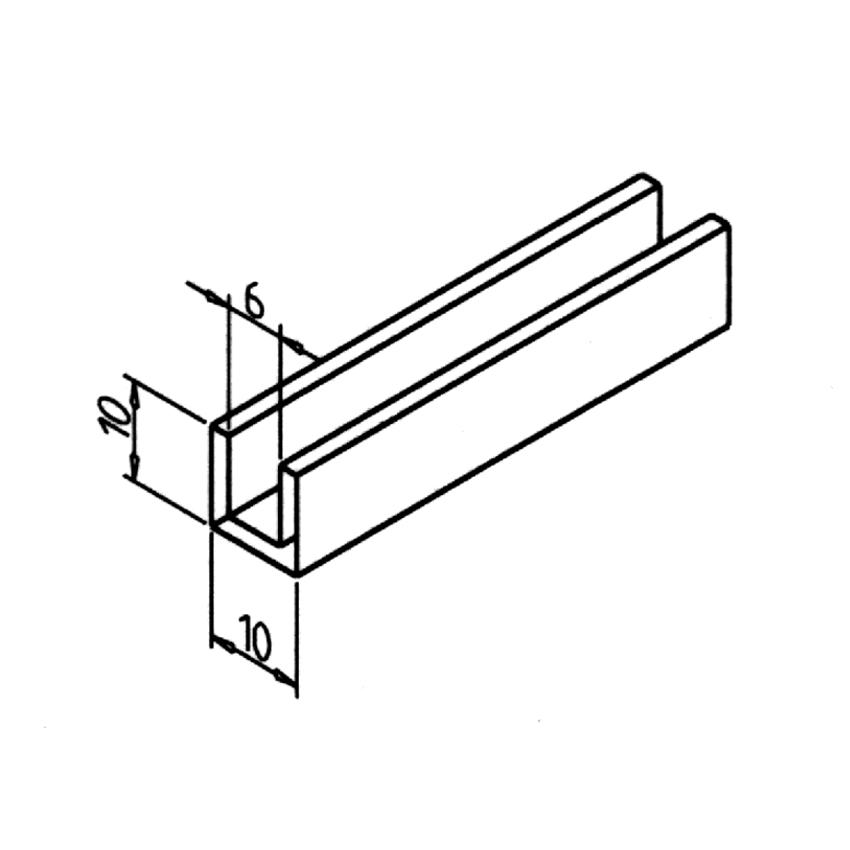 Alu U profil 10 mm za pritrditev panelov debeline 5 mm, primeren za površinske elemente v aluminijastih konstrukcijah.