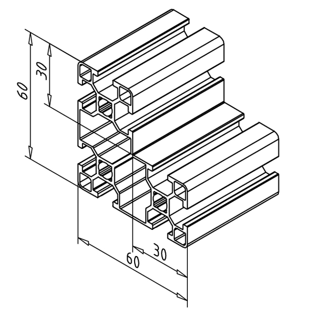 Alu profile 60 x 60 x 30 for industrial use. Explore our aluminium profile system – strong, modular, and easy to assemble.