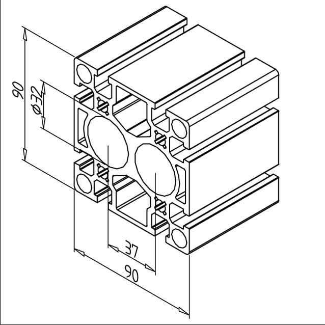 Alu profile 90 x 90 S for industrial use. Explore our aluminium profile system – strong, modular, and easy to assemble.
