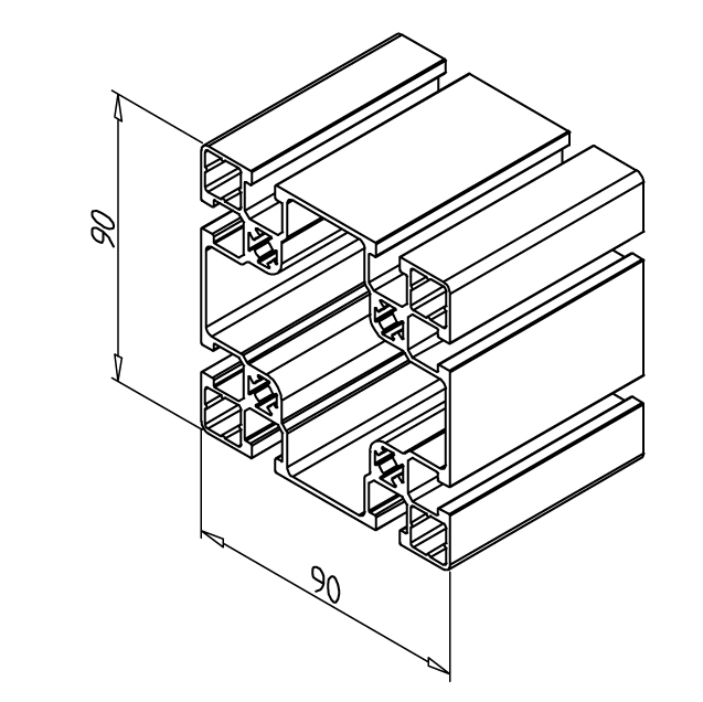 Alu profile 90 x 90 UL for industrial use. Explore our aluminium profile system – strong, modular, and easy to assemble.