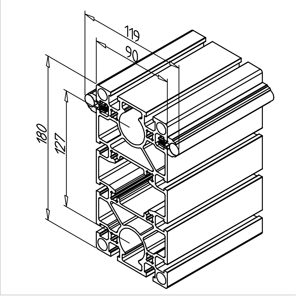 • On both sides with shaft supporting profile and shafts Ø 12 h6, pre-finished installed