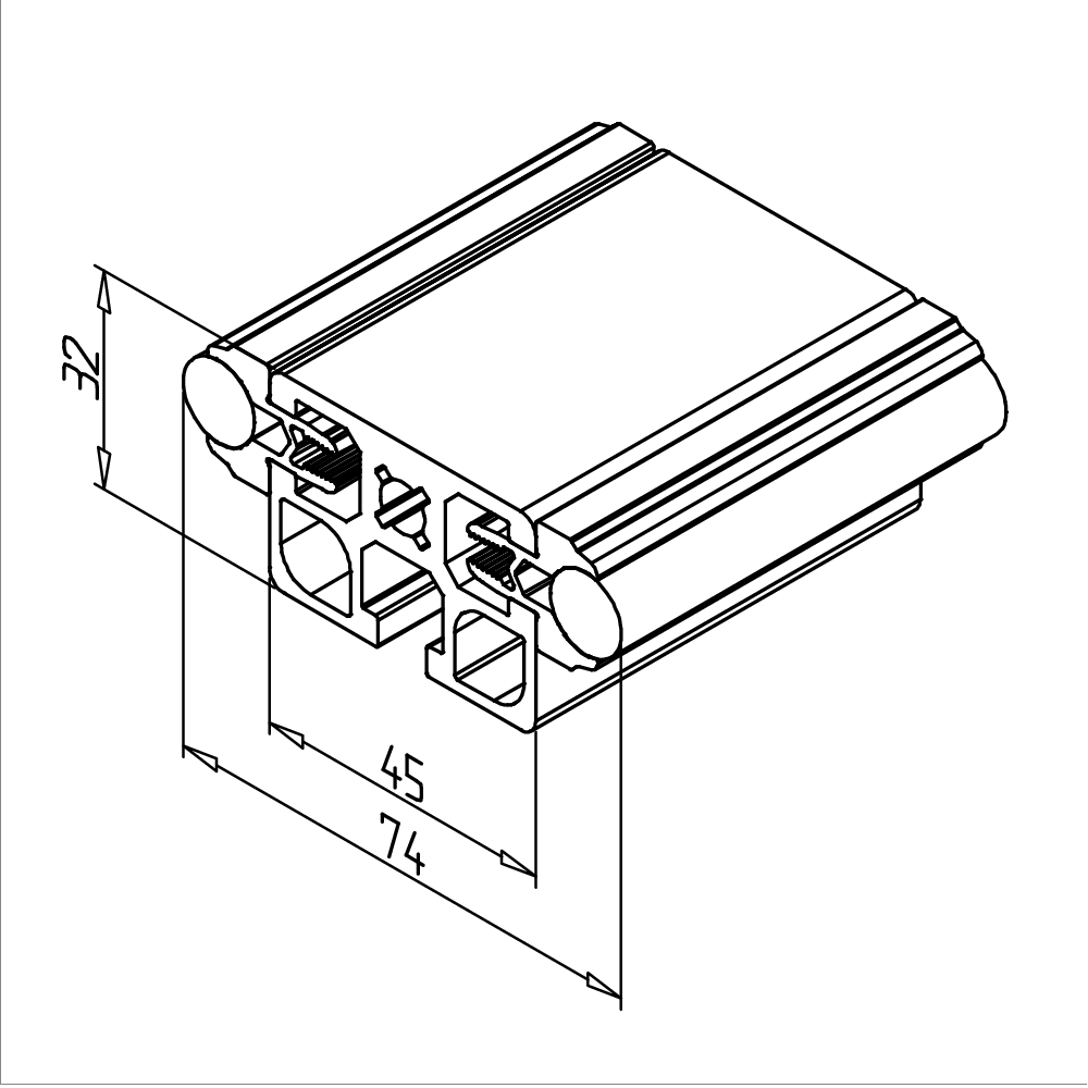 On both sides with shaft supporting profile and shafts Ø 12 h6, pre-finished installed