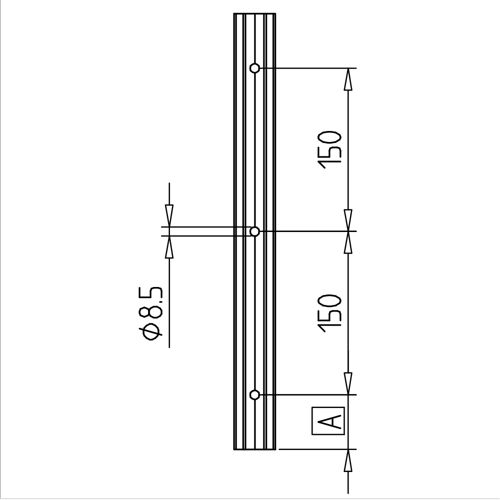 • Drilled ready for assembly ø 8 mm, Division 150 mm