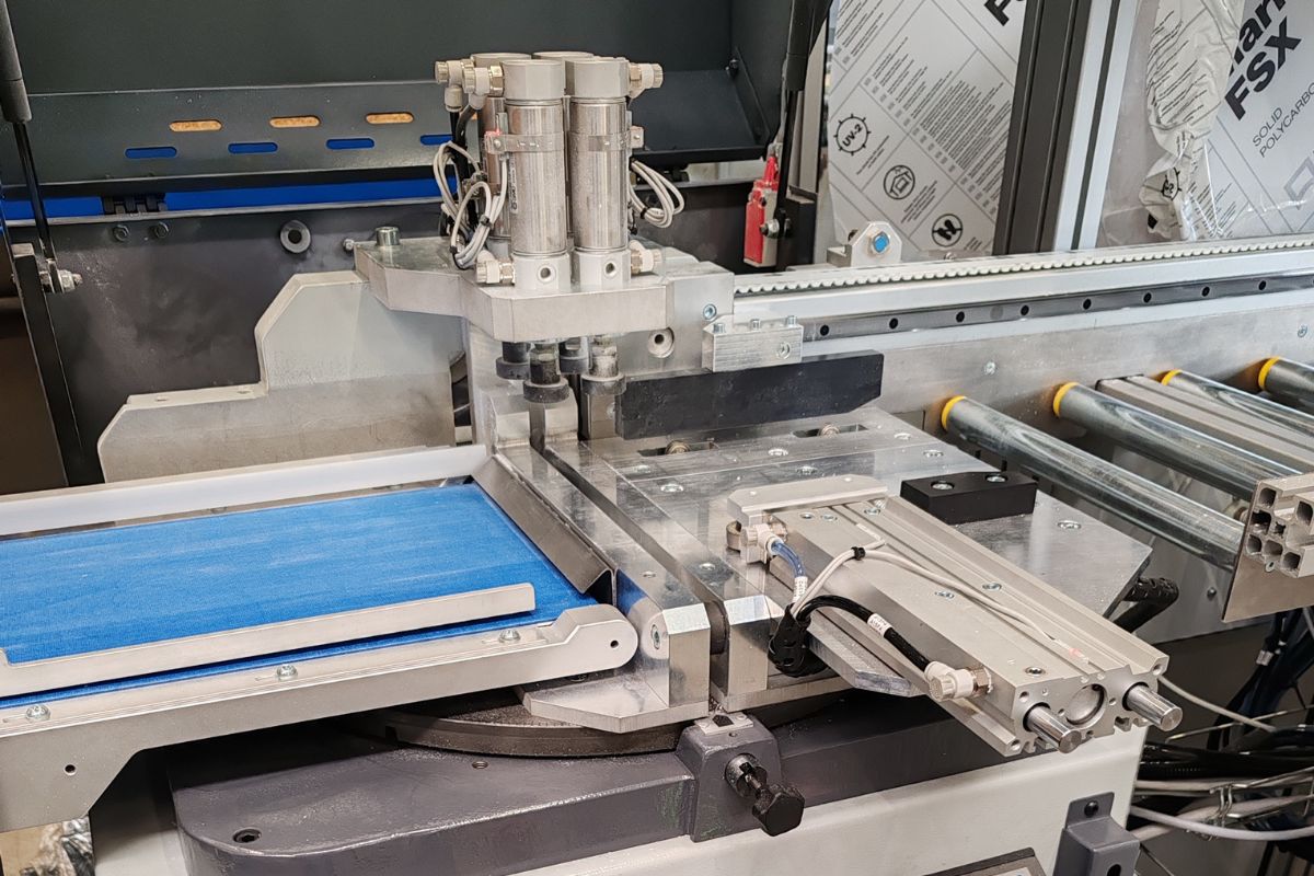 Za naročnika smo razvili in izdelali celovito avtomatizirano linijo za izdelavo vzorcev iz kompozitnega materiala Kerrock, ki se uporablja v arhitekturi in industriji. Cilj projekta je bil povečati produktivnost, zmanjšati stroške, zagotoviti konstantno kakovost ter zmanjšati odvisnost od ročnega dela. Ključna inovacija je posebno rezilno orodje, ki v enem samem koraku oblikuje vzorce in zagotovi polirano površino, s čimer je odpravljen potreben večstopenjski postopek brušenja.