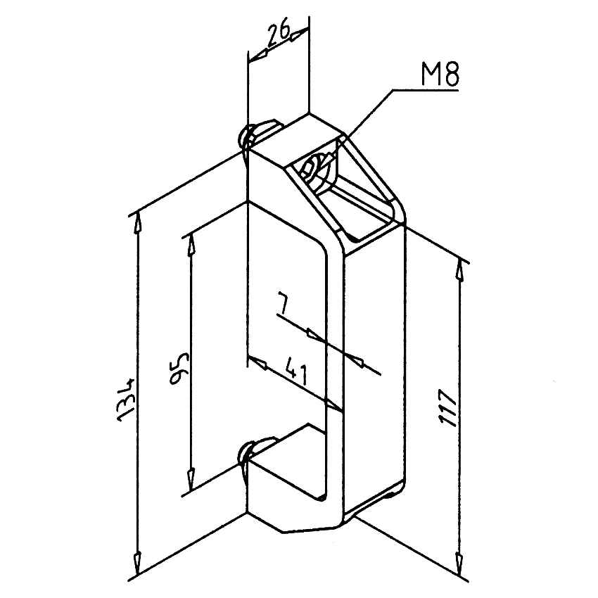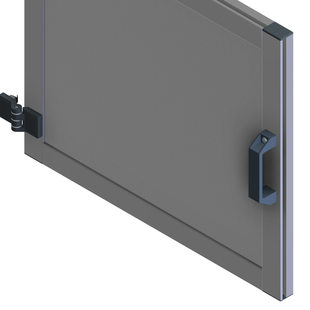 Ročaj za vrata 120 F v sivi barvi s kvadratno matico in fiksacijo položaja za varno montažo na aluminijaste profile.