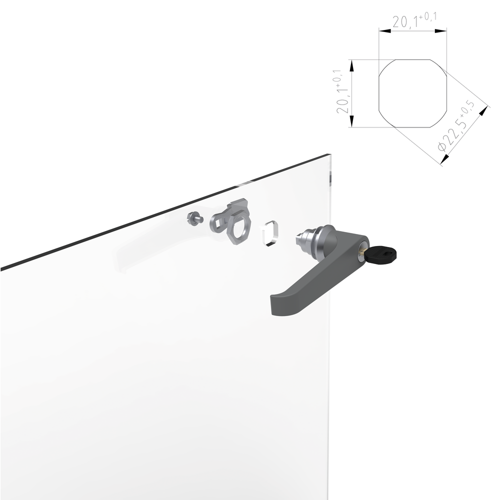 Ročaj za vrata 8 s ključavnico v sivi barvi za varno in zanesljivo zapiranje zaščitnih vrat in panelov v industrijskih okoljih.