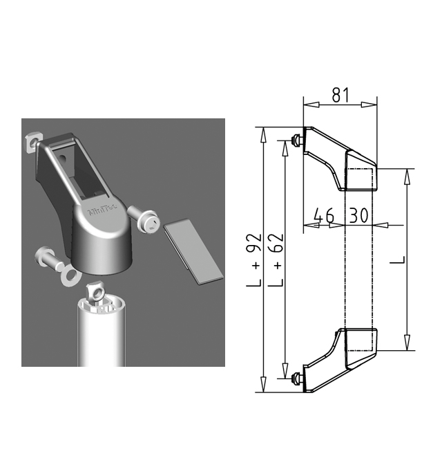 • Ročaj profil aluminij, eloksiran E6/EV1