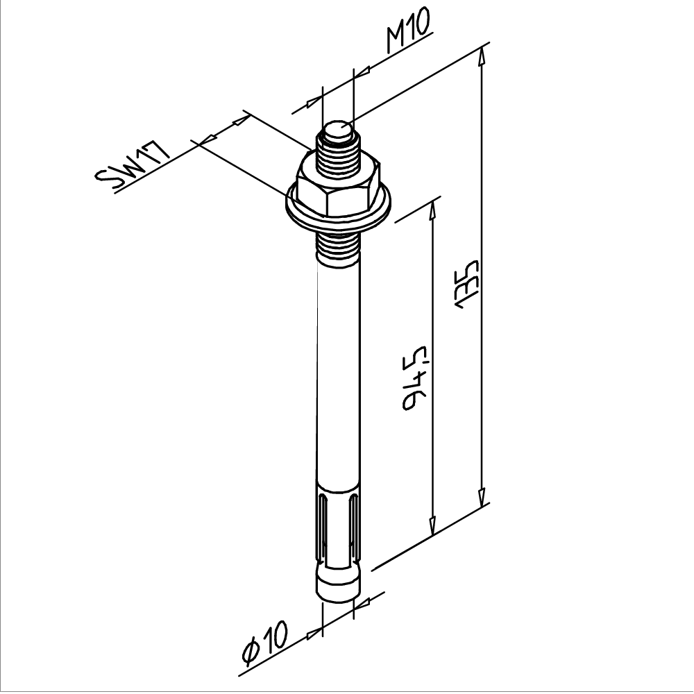 Vijak za tla M10 za varno pritrditev profilov in okvirjev na beton ali druge trdne podlage.