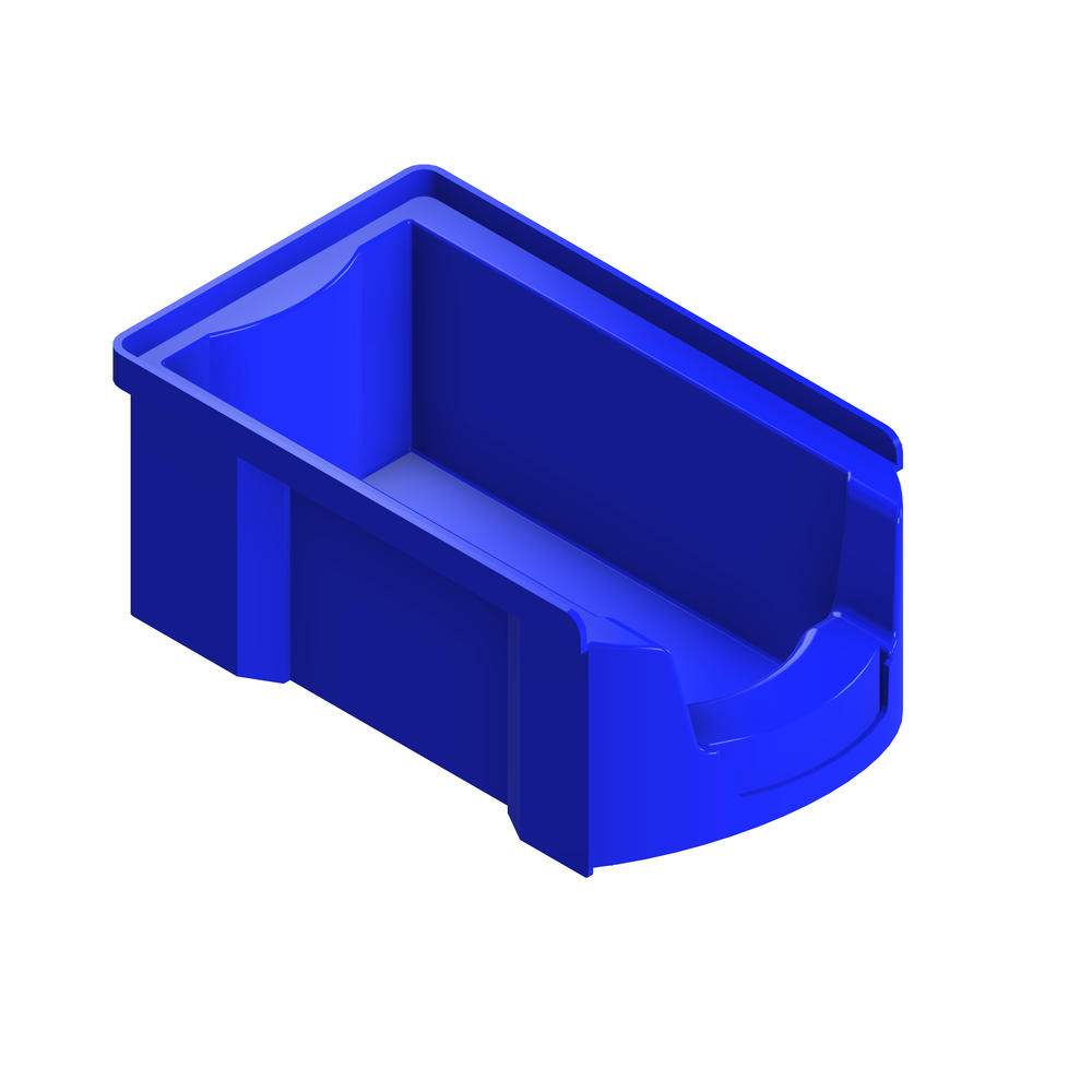 Zaboj za vijake v modri barvi omogoča pregledno označevanje vsebine, varno zlaganje, prenosljivost in enostavno organizacijo drobnega materiala.