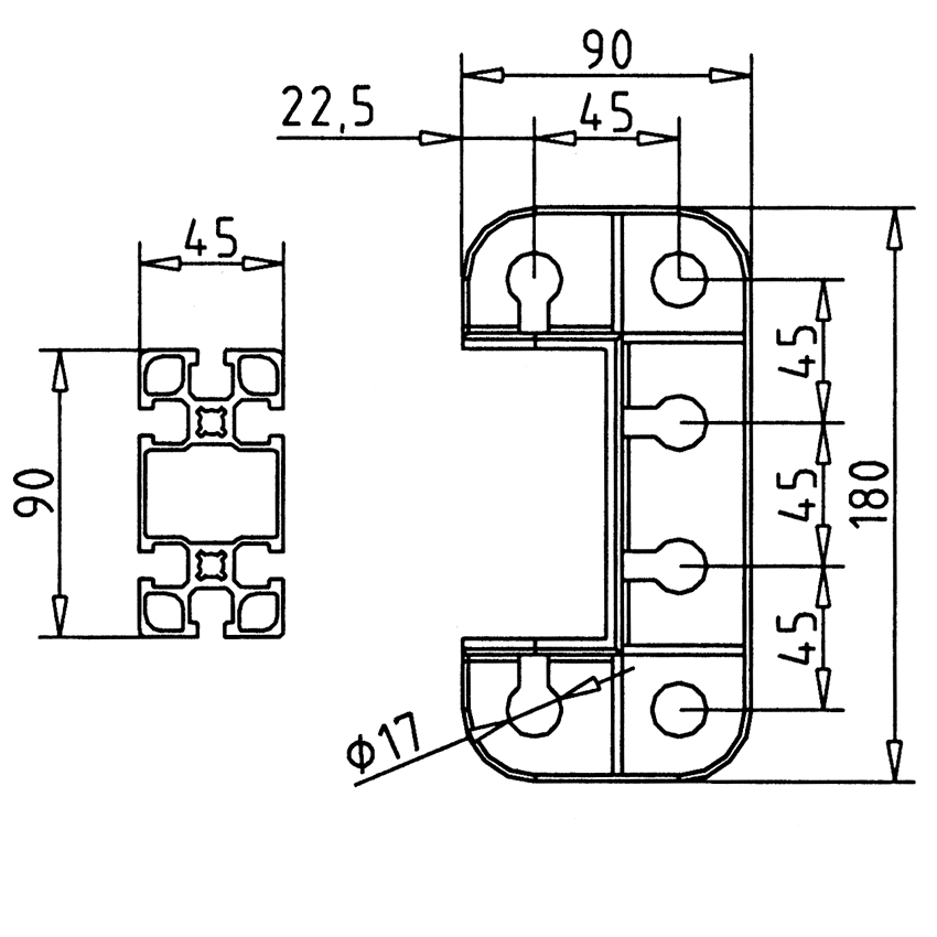 • Iz profila 45 x 90 F