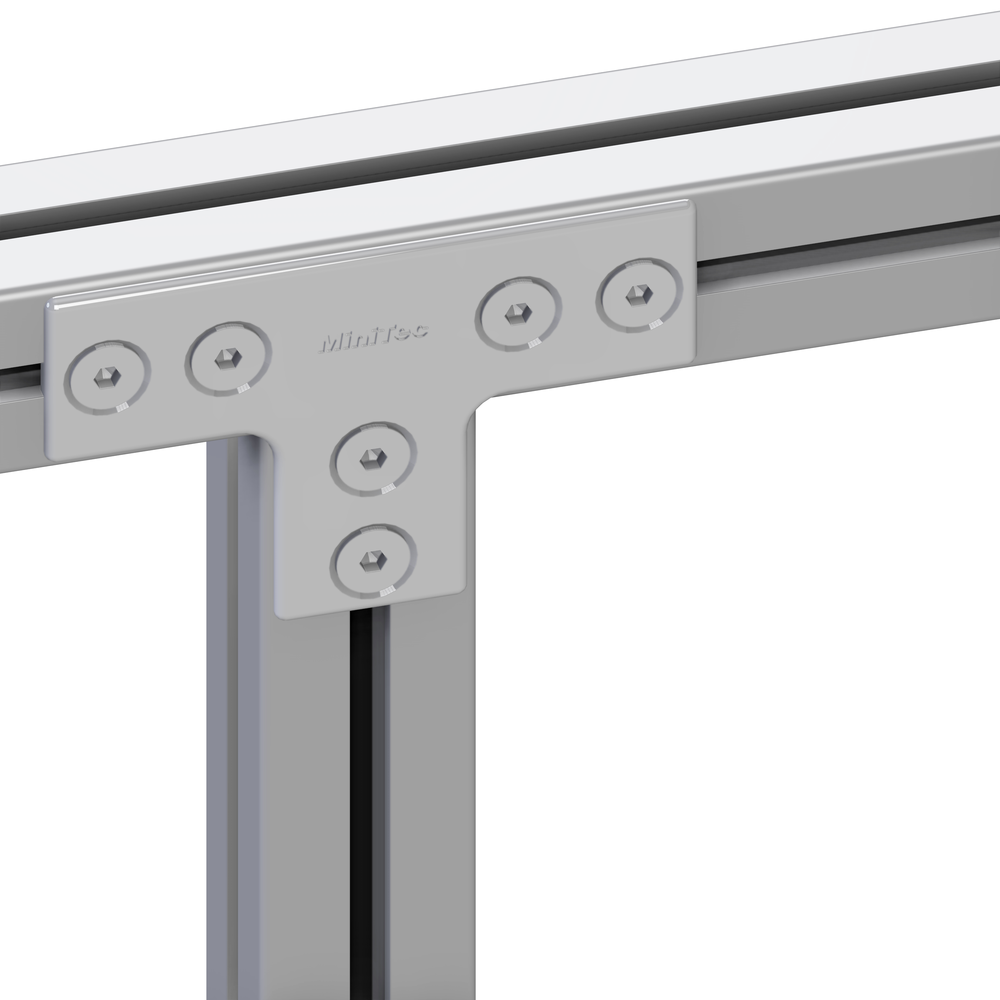 T vezna ploščica iz nerjavečega jekla za trdno in zanesljivo utrjevanje aluminijastih konstrukcij – primerna za različne sestave.