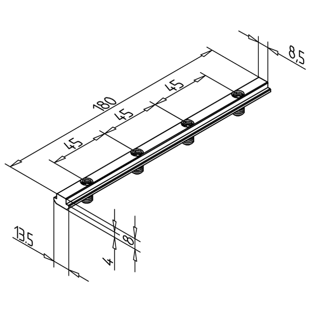 T-letev 180 za podaljševanje alu profilov in pritrditev valjčnih elementov v vodilu LW. Trajna in enostavna za montažo.