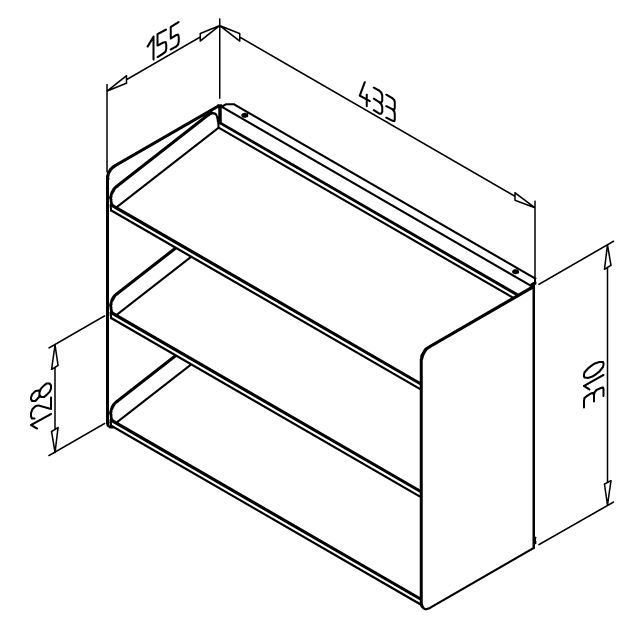 • Za največ 12 polodprtih sprednjih posod, D= 165 mm, Š= 105 mm, V= 75 mm