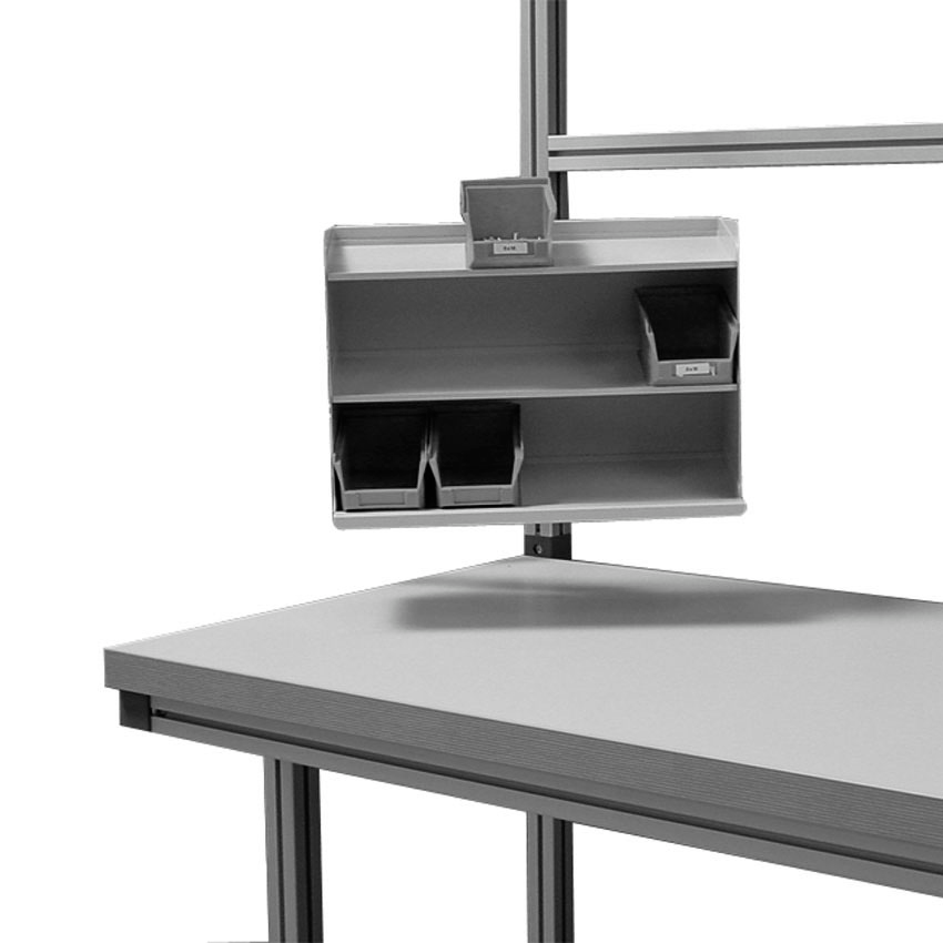 Polica za male zaboje izboljšuje delovni tok, omogoča učinkovito organizacijo in zmanjšuje čas iskanja drobnega materiala.