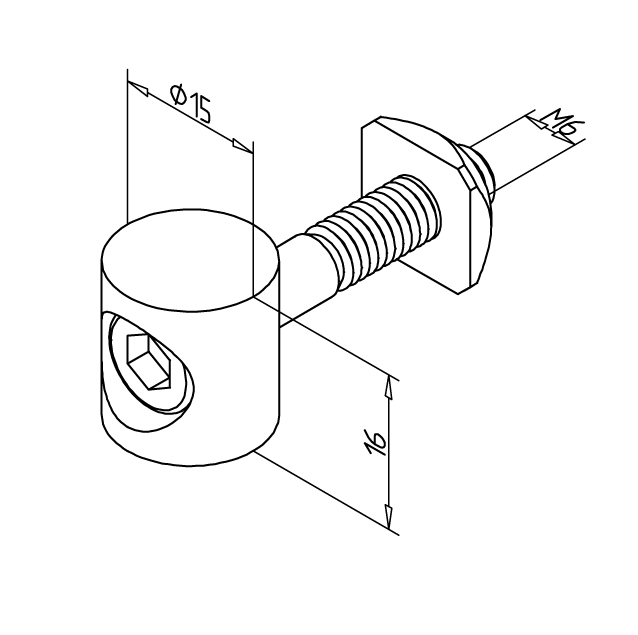Povezovalni vijačni konektor 15 za profile 19 in 32 mm, idealen za naknadno montažo dodatnih profilov na nosilce v obstoječih aluminijastih konstrukcijah.