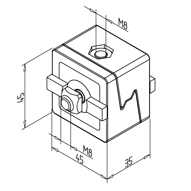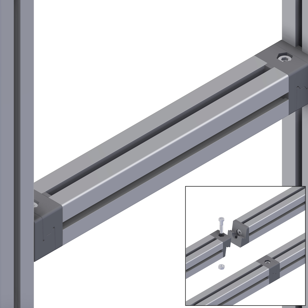 Alu kotnik 45 za povezovanje alu profilov. Primeren za podaljšave, prestavljive priključke in začasne pritrditve.