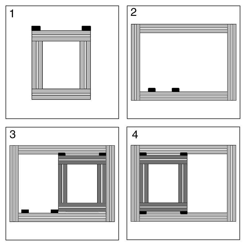 • 2: Spodnje vodilo vstavite v konstrukcijo okvirja