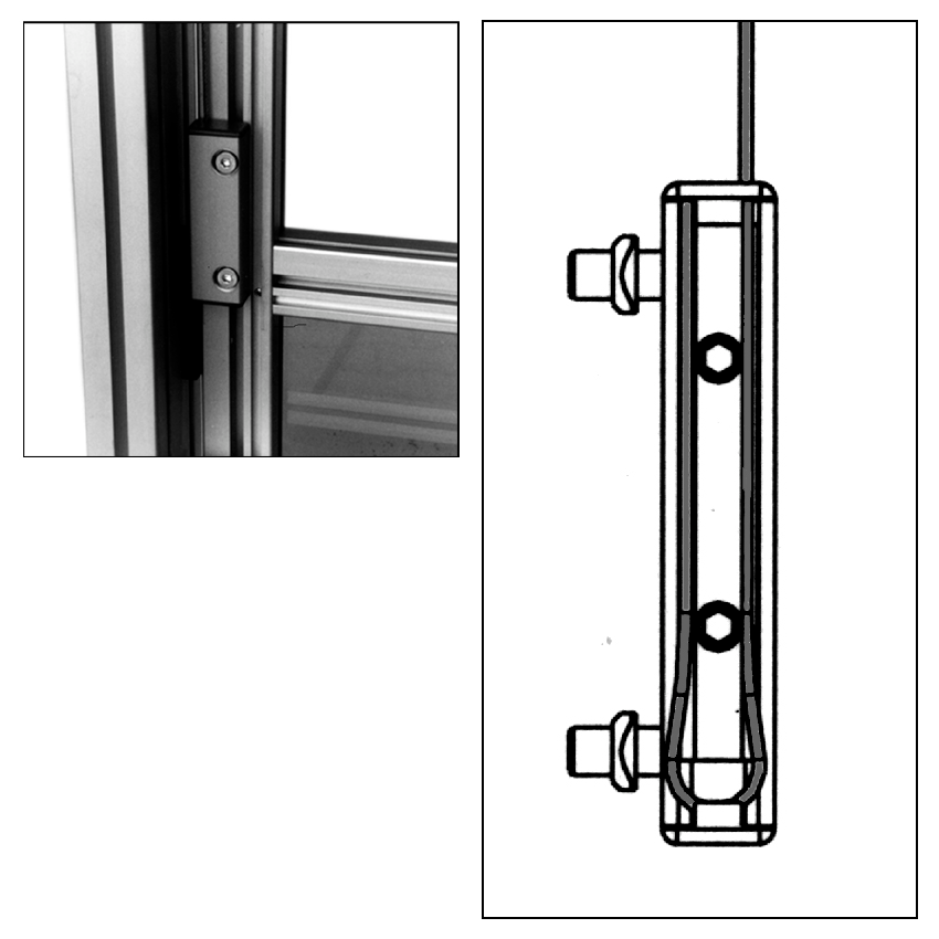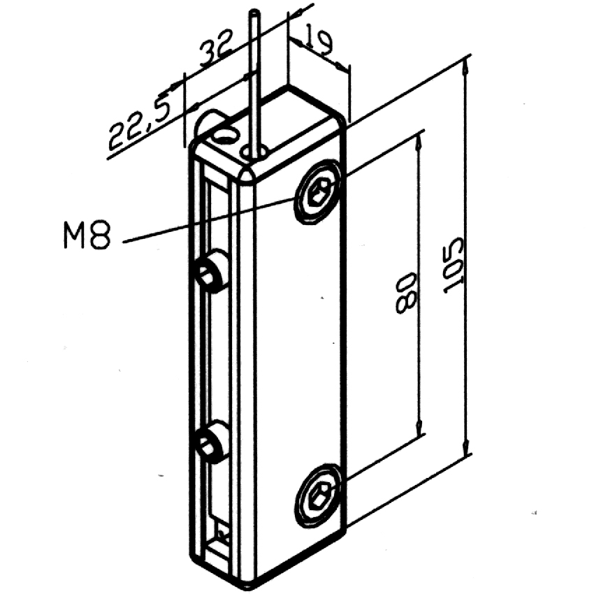 Objemka za vrv 19x32 za varno pritrditev jeklenega kabla na vrata dvižnega sistema.