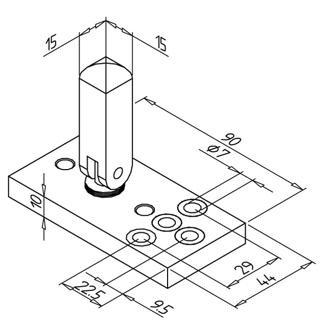 Šablona za vrtanje lukenj v alu profile serije 45 zagotavlja natančne luknje, hitrejšo obdelavo profilov in enostavno montažo konstrukcij.