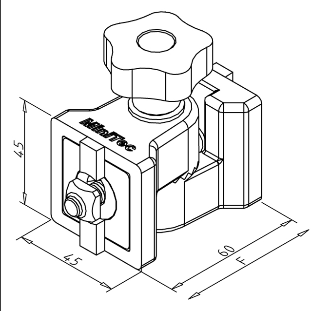 Trpežen zglobni člen 45 R z zvezdnim ročajem za enostavno nastavljanje in varno pritrditev težkih dodatkov z do 180° prilagodljivostjo.